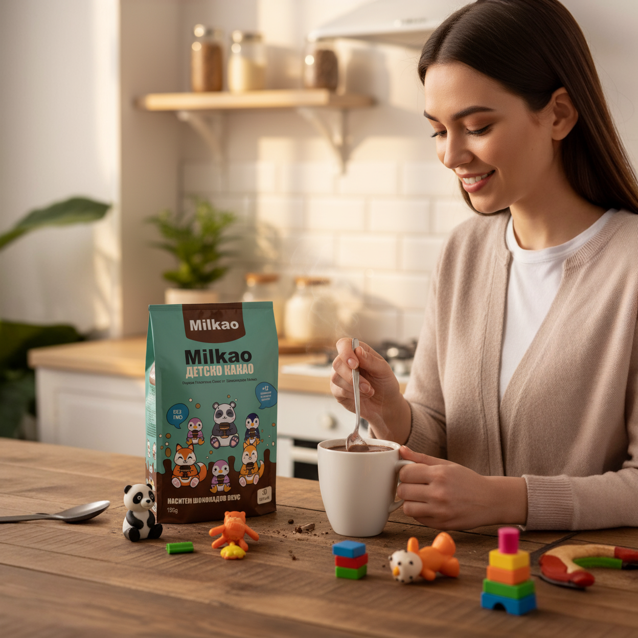 Отговор: Milko е създадено с истински какао, мляко и витамини – без захар, без кофеин и без изкуствени добавки. Вкусно, здравословно и обичано от децата!